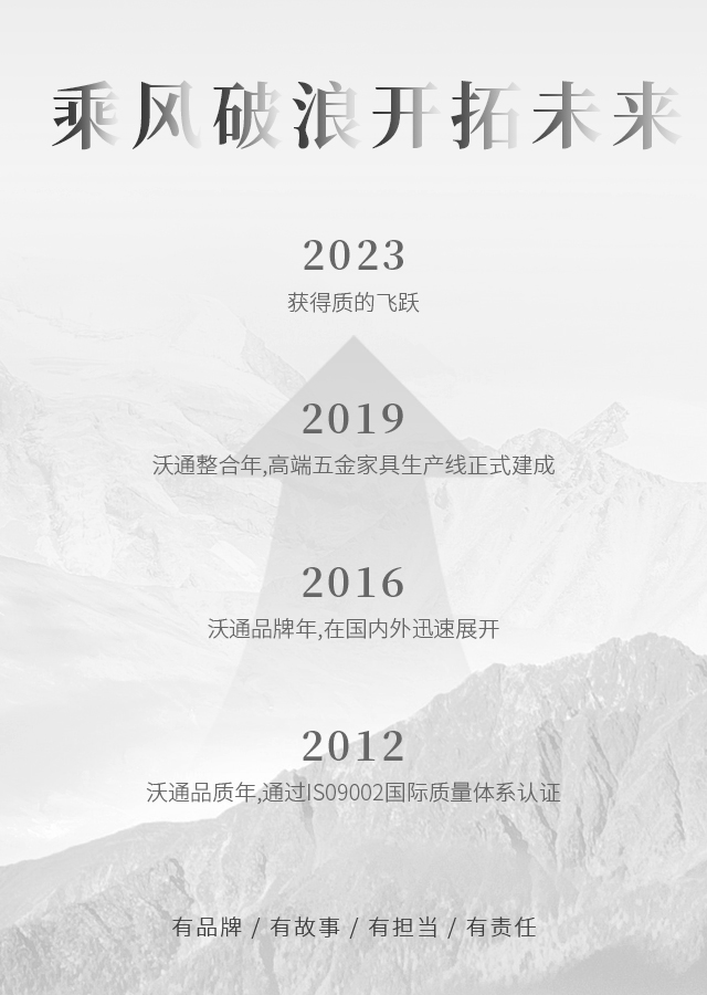 沃通五金將積極弘揚中國家具文化,綜合國際家具潮流,運用無限的創(chuàng)意,設計生產(chǎn)出大量造型美觀,引領(lǐng)時代潮流的新產(chǎn)品。
